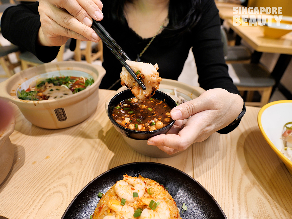 Next, let’s try Chuan TaiZi Mala Tang’s Zao La Jiao Chao Fan 糟辣椒炒饭 ($9.90+). This fried rice is cooked with egg, prawns and their secret chilli 糍粑辣椒 Ci Ba La Jiao. It has a close resemblance to our local egg fried rice but with a twist of pickled fermented citrusy chilli flavour. Enjoy a piping hot plate of fried rice that is fried to order in single portion.