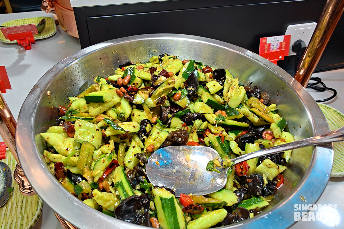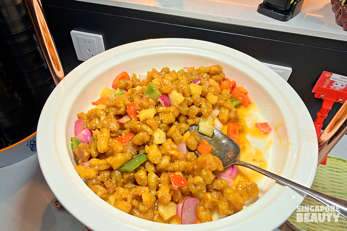 lalaNext dish that we enjoyed on the hot station spread is their stir fried peppercorn pickle chilli lala shellfish dish – (爆炒藤椒花蛤). The clams meats are flavourful and moist, foreshadowed with subtle peppery, mildly numbing and fruity fragrant before the sweetness and briny clam flavours kicks in. Paired with their in-house 3+1 selected booze promotion (includes Qingdao and more), this is recipe for a perfect chill night to hang out with your beer buddies at this buffet place.